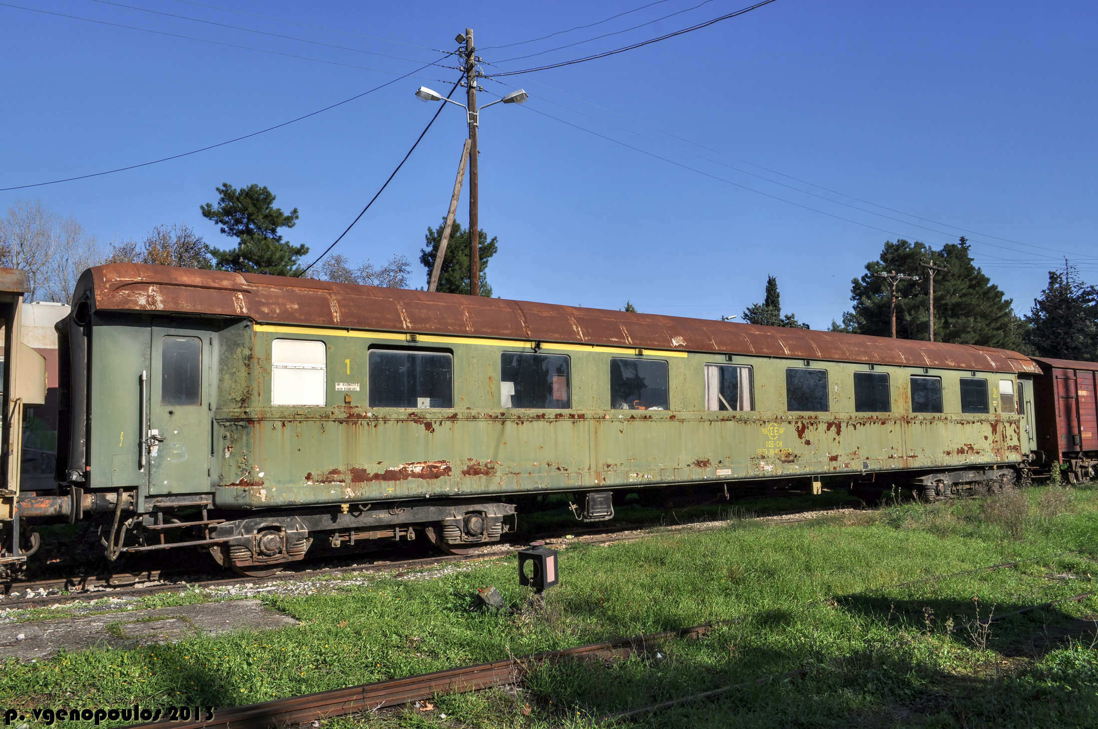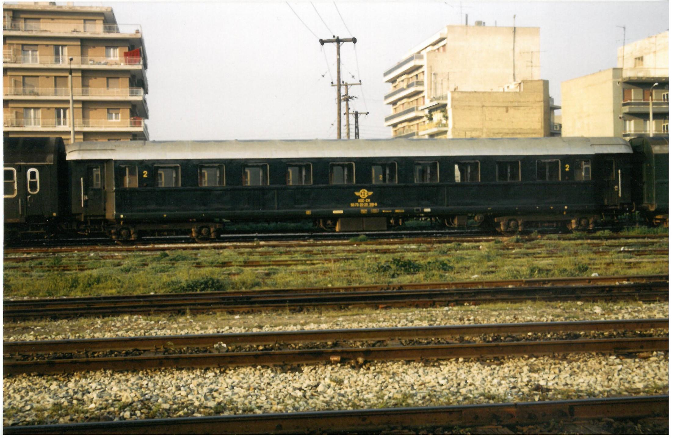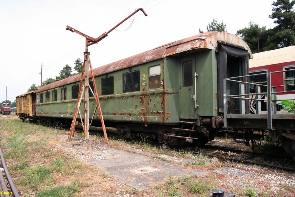 At Lianokladi station old passenger car Italian Coaches ,build at Torino Italy 1950 5 5 2007 photo by Gbidis