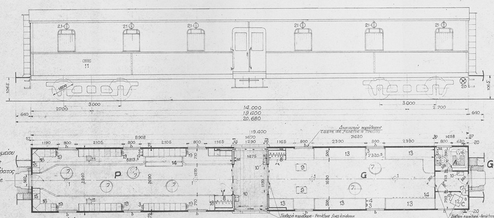 Both of these classes, ordered via contract 1037/50, were built by "Industrie Stabiensi Mecc. & Navali - AVIS - C/mmare di Stabia" in 1952, and their design was quite similar with the pre-war ΔΕφστ 1311-1314 (mixed luggage-post) and Εφστ 1635-1638 (post only) - 1926 Austrian coaches.