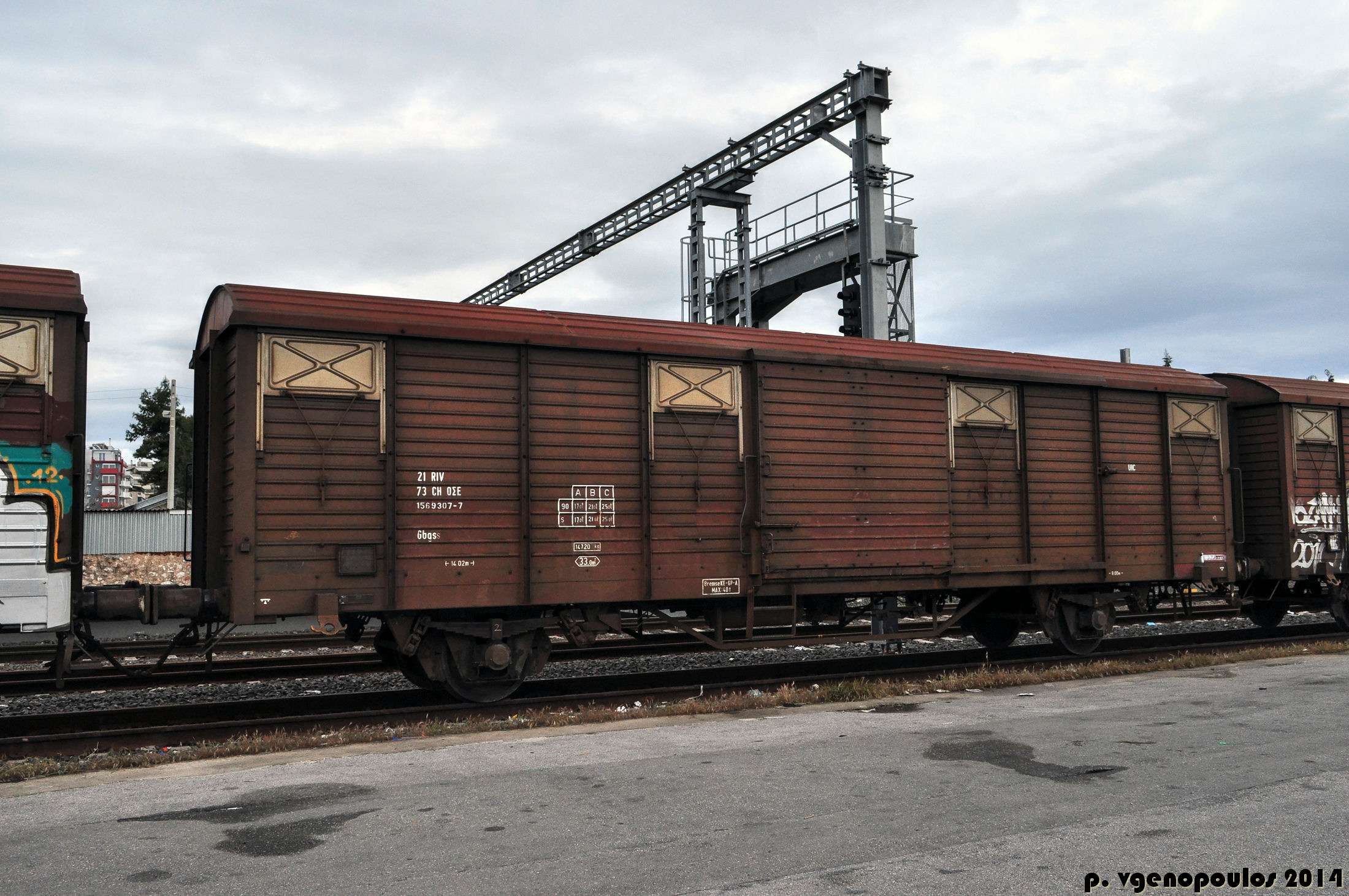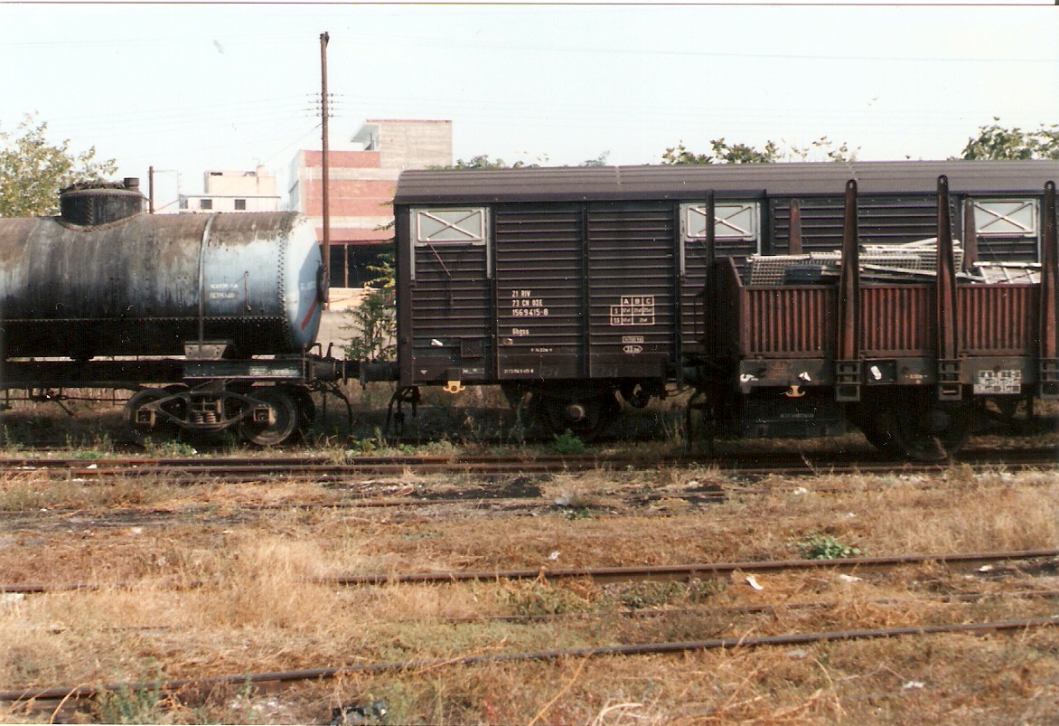 Photo Balkanmodels: October 1990 at PES Thessaloniki. Wagon 156 9 415-8. This one is Gbgss. For the historian: These sidings are long gone. They gave way to another highway. Years of service wiped out for the motor car. :twisted: