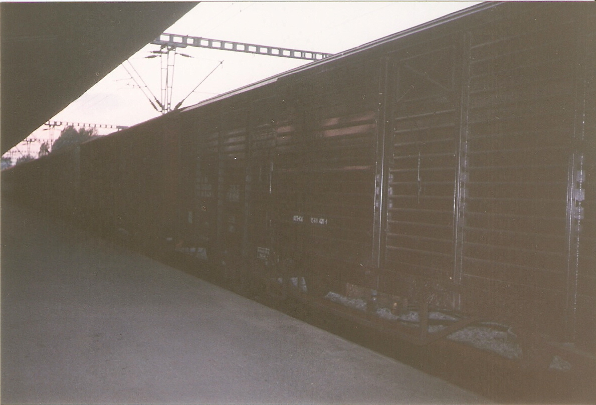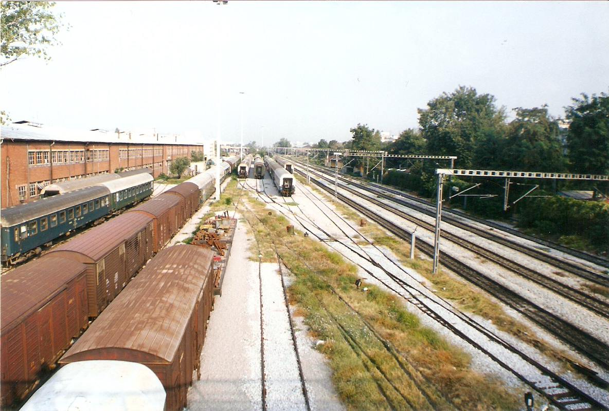 Photo balkanmodels: November 1997 at NES Thessaloniki. It is getting dark and using flash in those days was not an option since it would attract unnecessary attention from the officials. Wagon 156 9 425-1 just visible.
