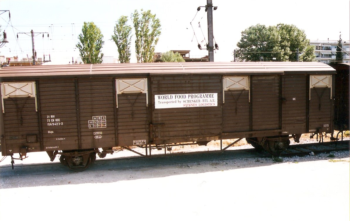 Photo Balkanmodels: April 2001 NES Thessaloniki. Wagon 156 9 391-1 unloading.