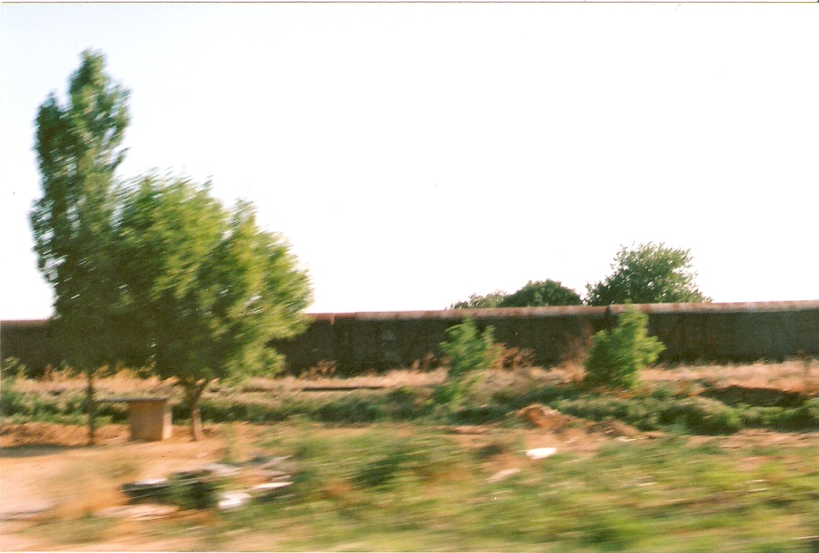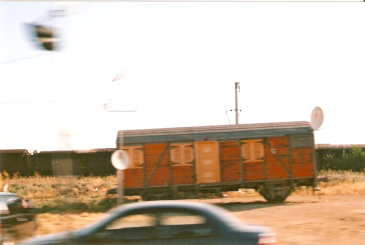 Photo Balkanmodels: Lachanokipi turning triangle June 2000 still from outside the bus. The eagle eyed, amongst other things, will notice the two ex-German open wagons in the fore ground.