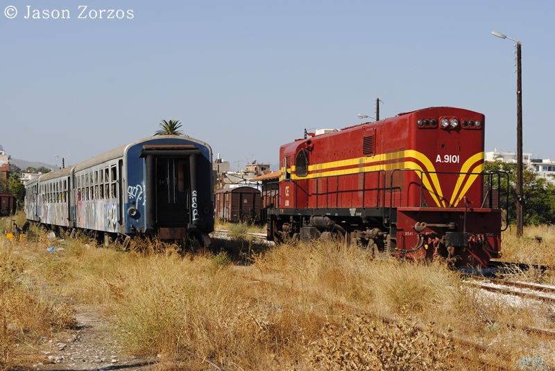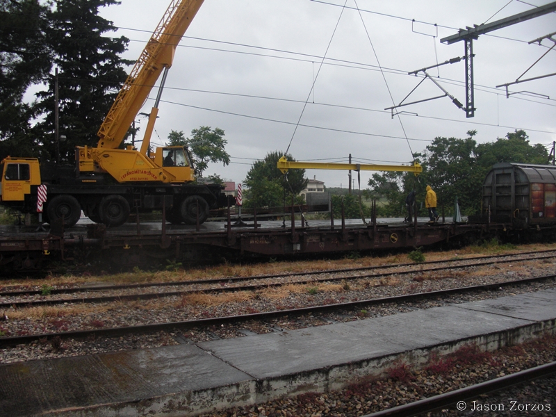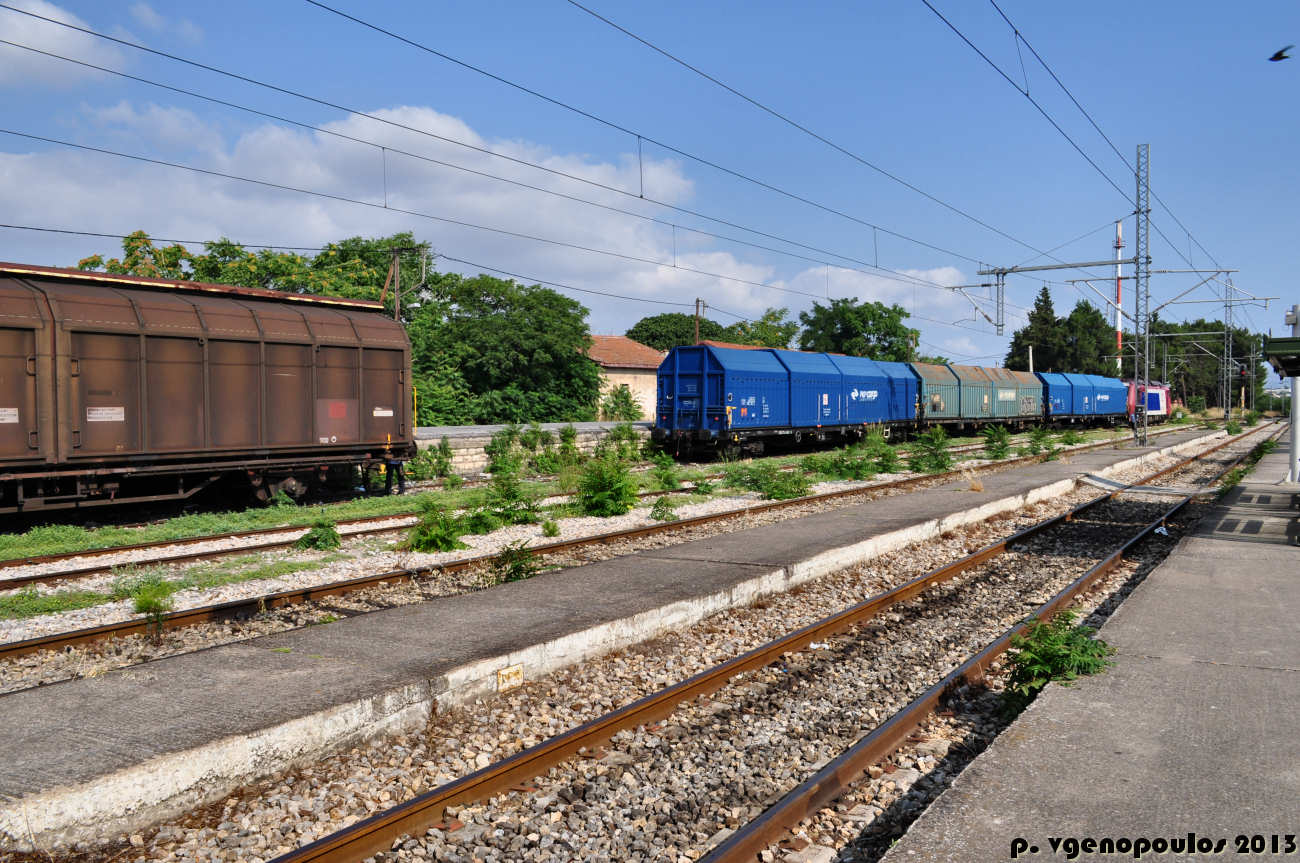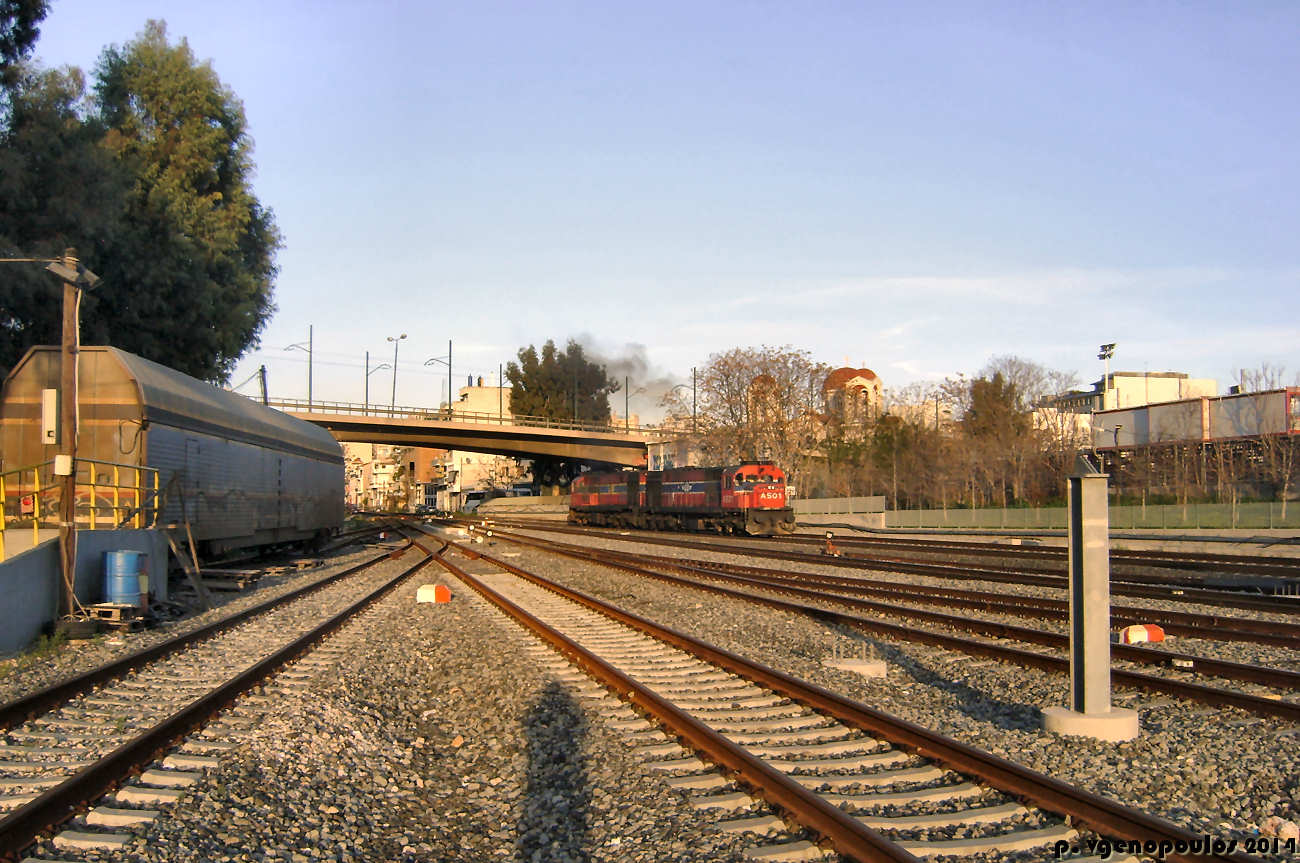 Shunting on the first days of September 2012 at Korinthos old station in order to transport the newer freight cars to Tripoli and leave the rest die there. This station was a huge immigrant hotel (/dump) so the tones of rubbish can be seen.