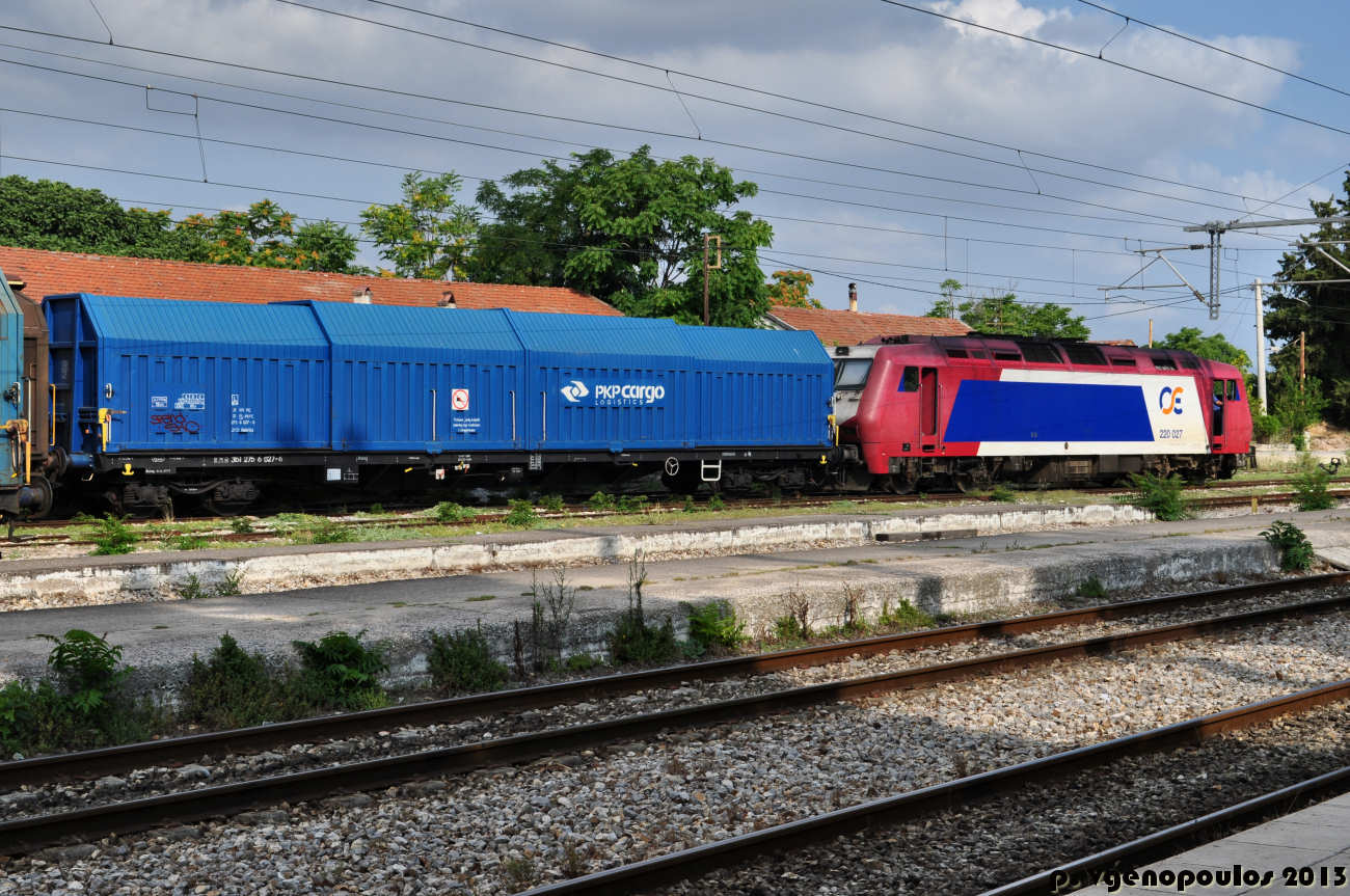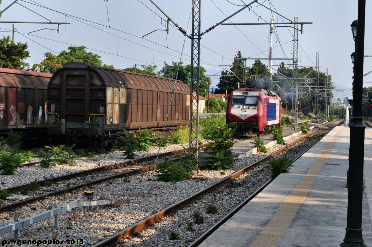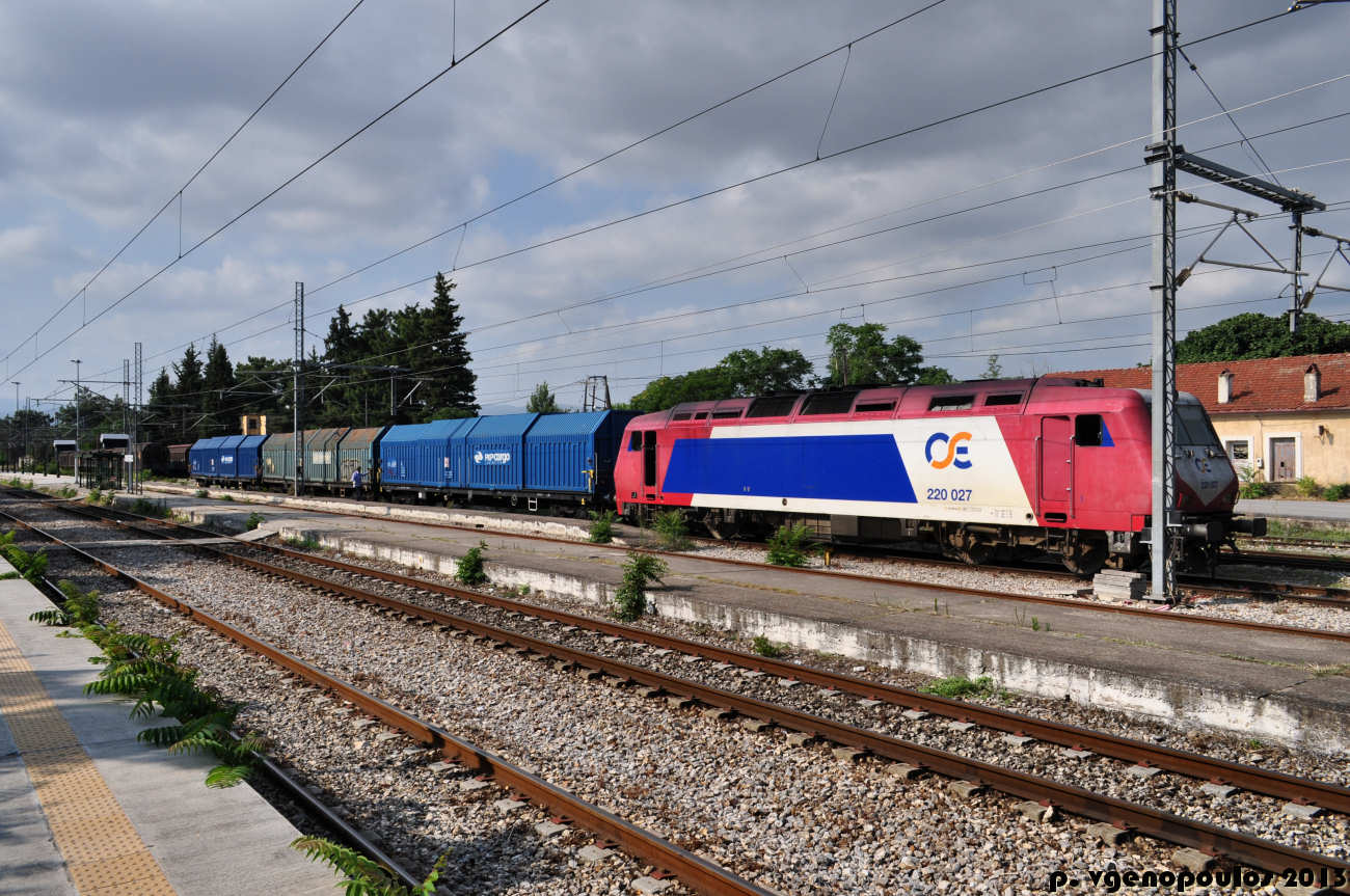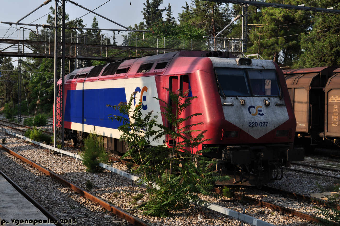 8:05 am, the 220 027 is standing idle near by, while the morning IC for Thessaloniki makes a stop