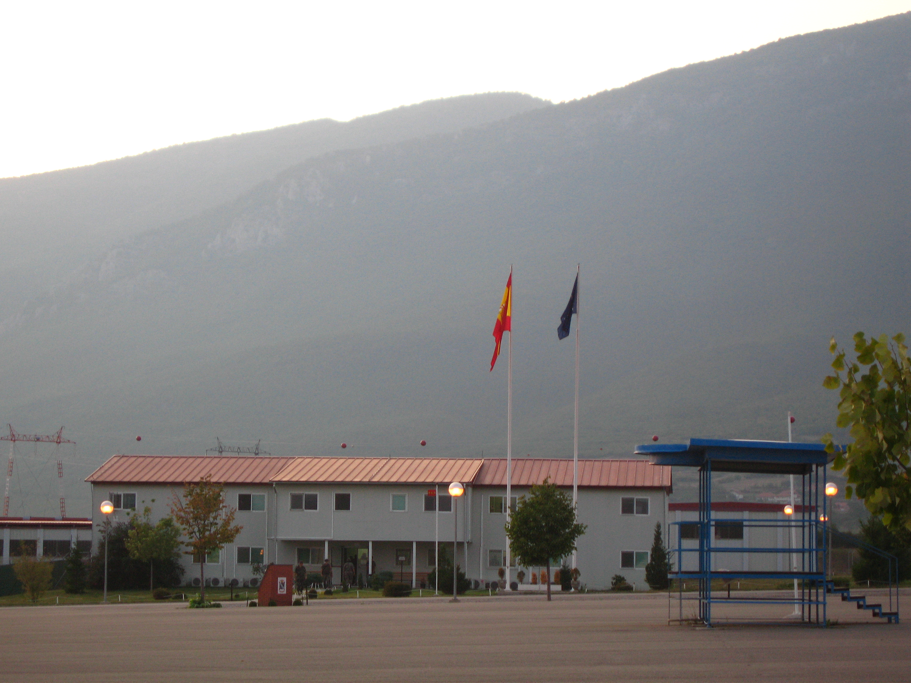 KFOR serie. Picture 7. A view of the spanish base at Istok. Parade explanade and command building