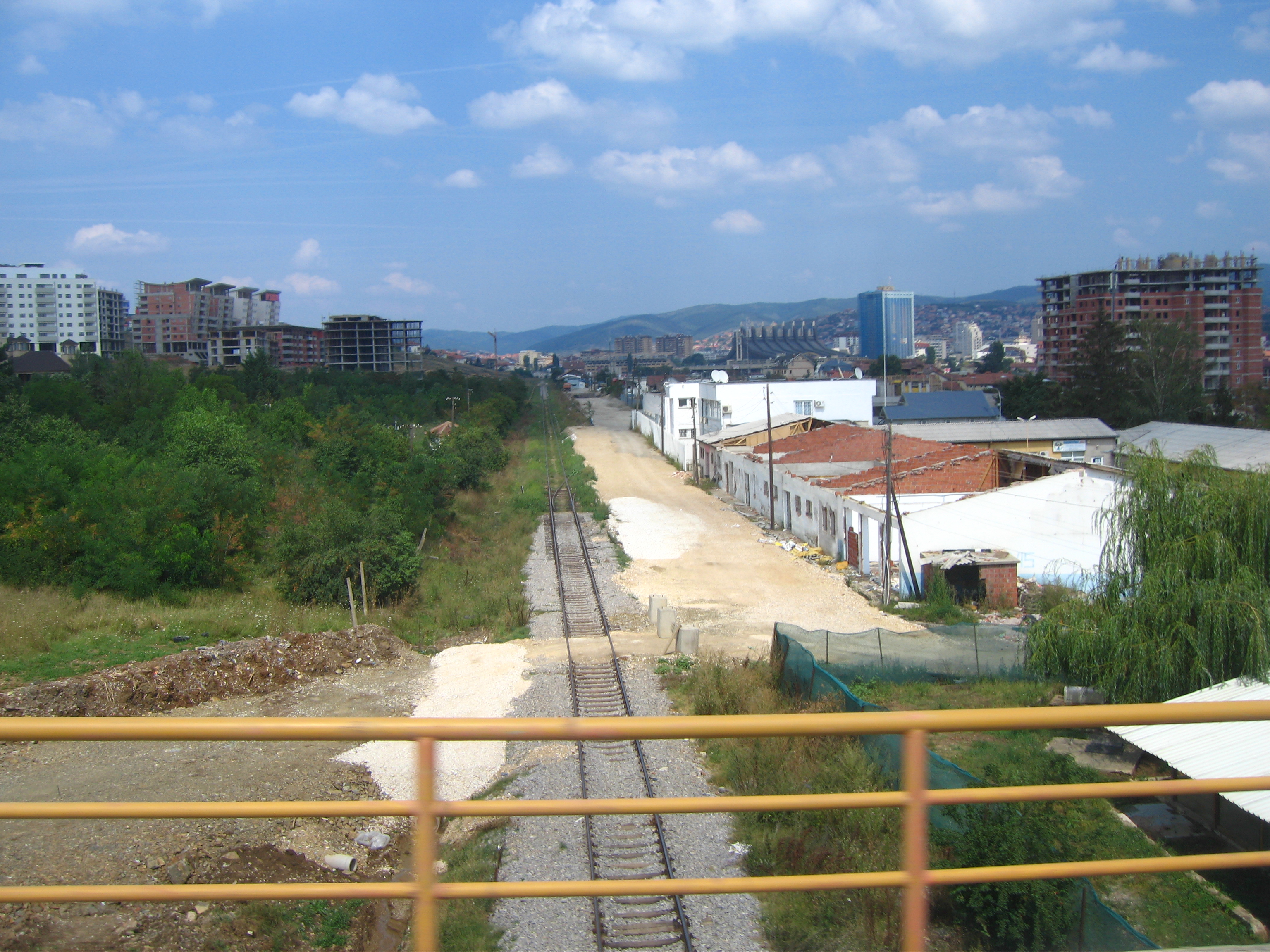 KFOR serie. Picture 10. View of renewed track departing from Pristina station. Most buildings are under work