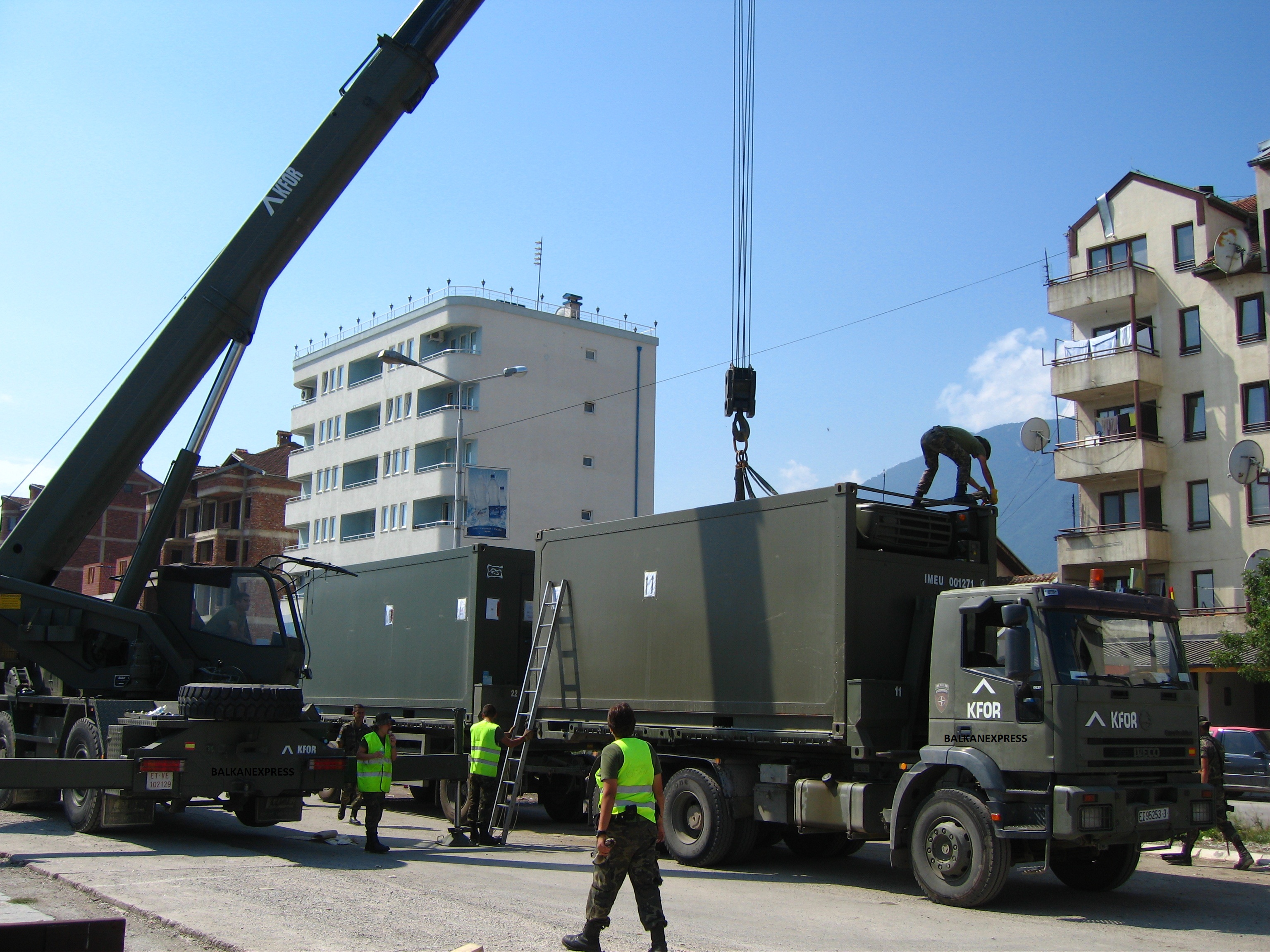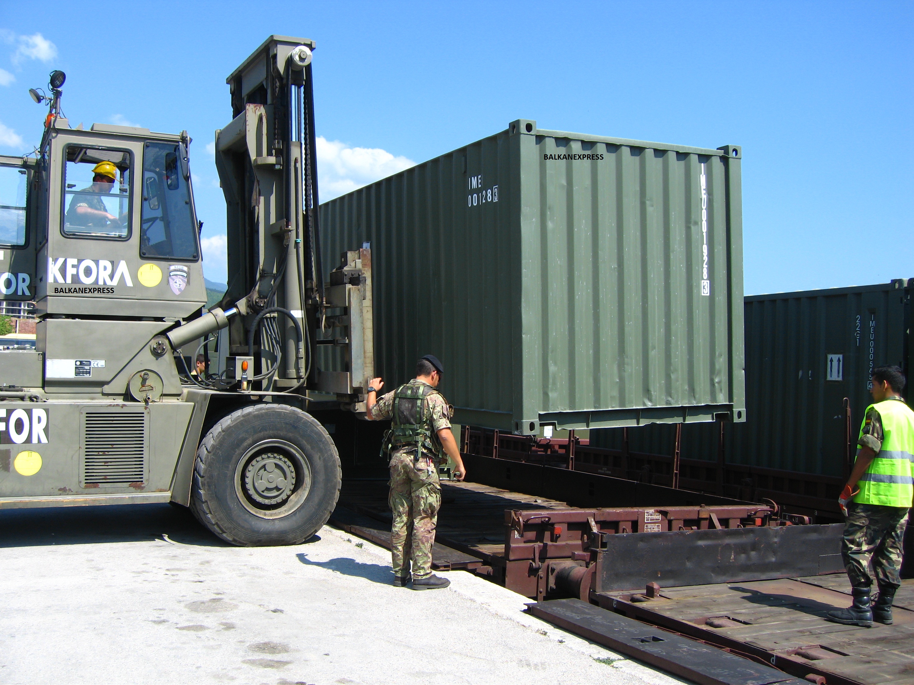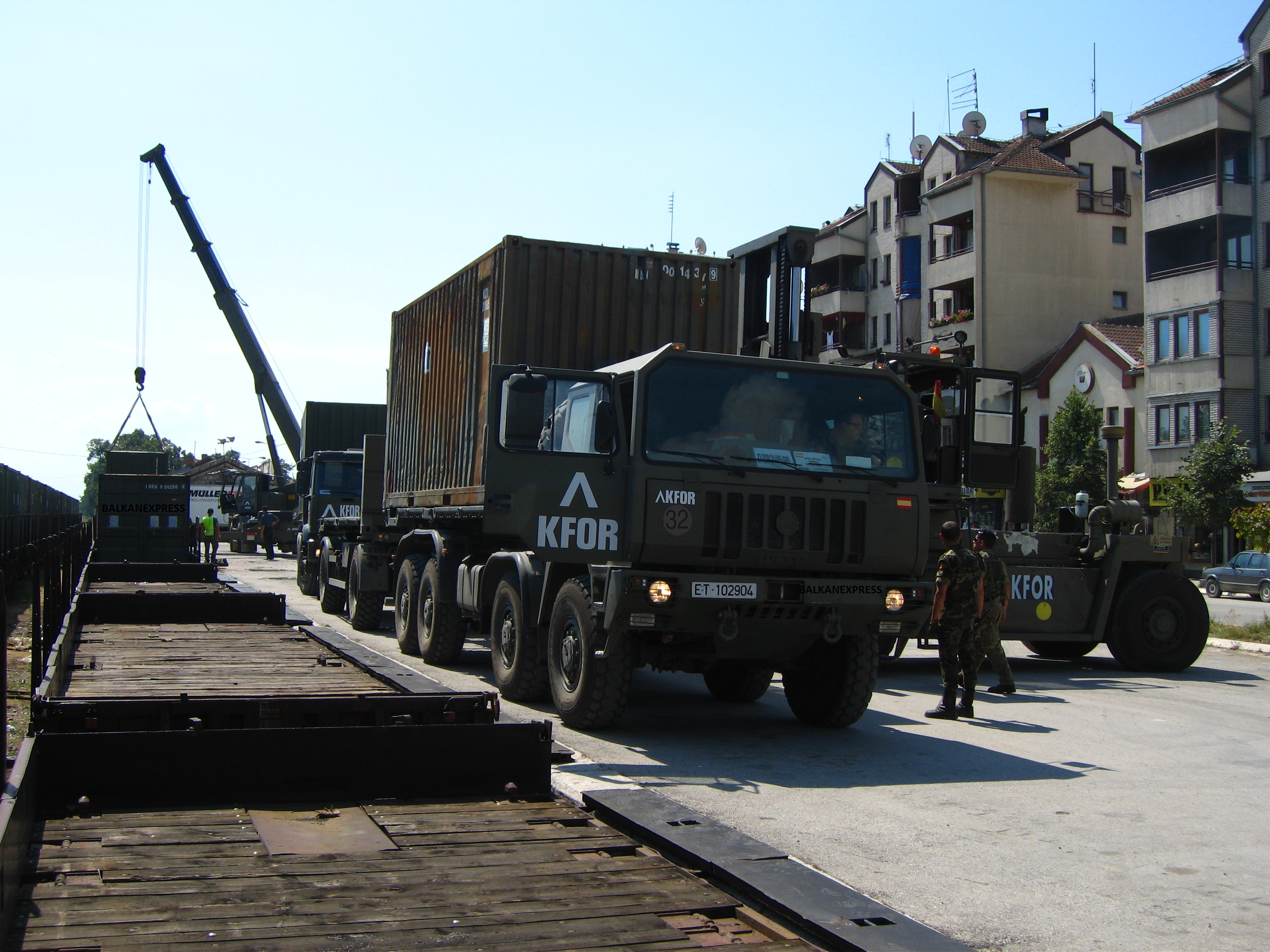 KFOR serie. Picture 13. Containers being laoded onto the Macedonian platforms