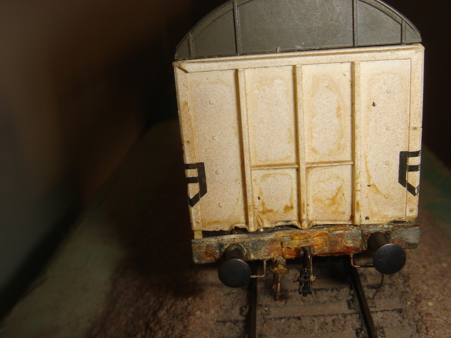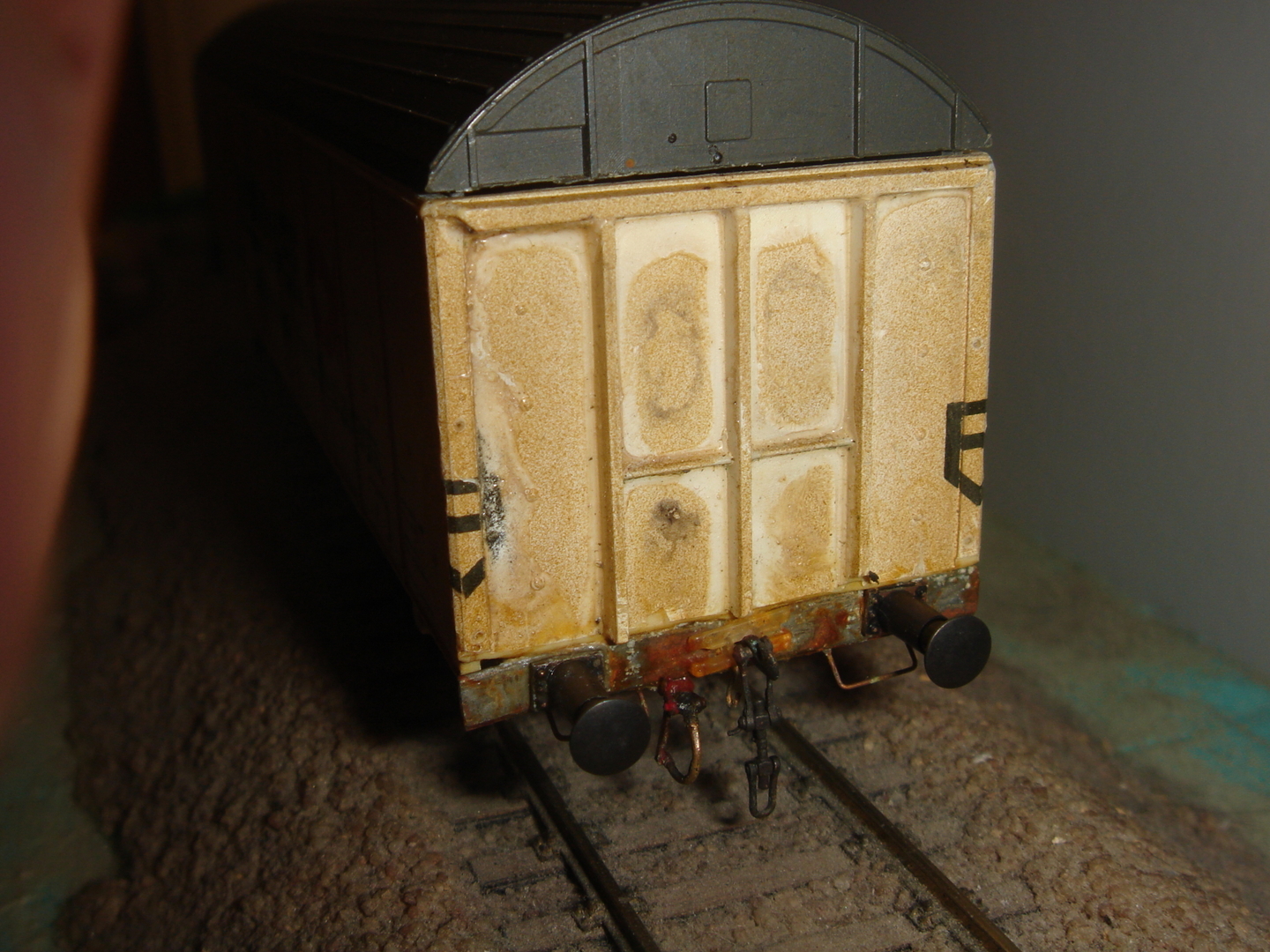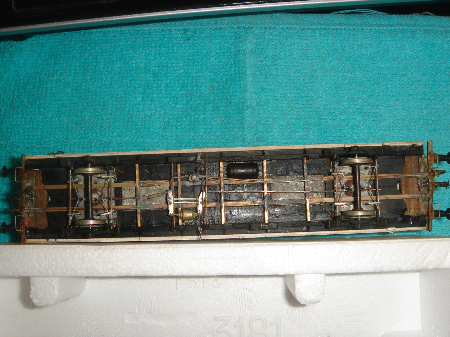 c./ All parts of bufferplank (Pufferbohle), i.e. buffers, coupling-pockets, painted bown as the body-shell as per prototype (blue-arrows).